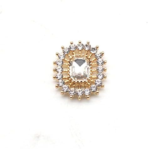 10PCS 17 * 20MM Rectangular Metal Rhinestone Flat Button Button for DIY Wedding Clothing Bags Hair Accessories Decorative Jewelry