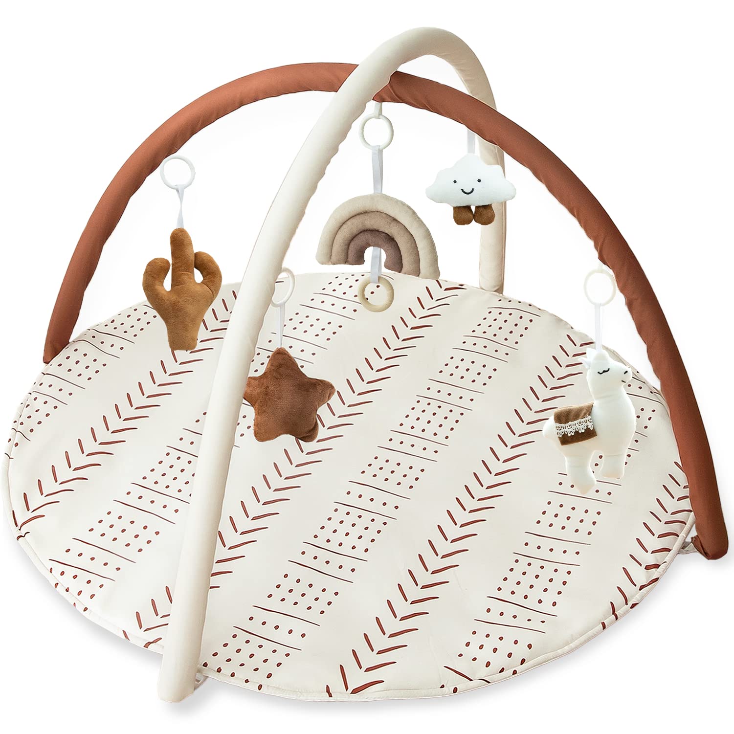 Baby Gym Mat Infant Activity Gym Mudcloth Baby Activity Center with Play Mat with 5 Toys for Babies as Shower Use