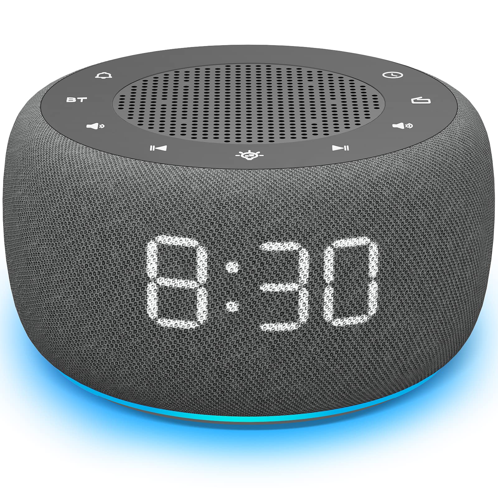 BUFFBEE Bluetooth Speaker Alarm Clock with FM Radio - High Fidelity Sound, Full Range Dimmer, Plugged in Alarm Clock Radio for Bedroom