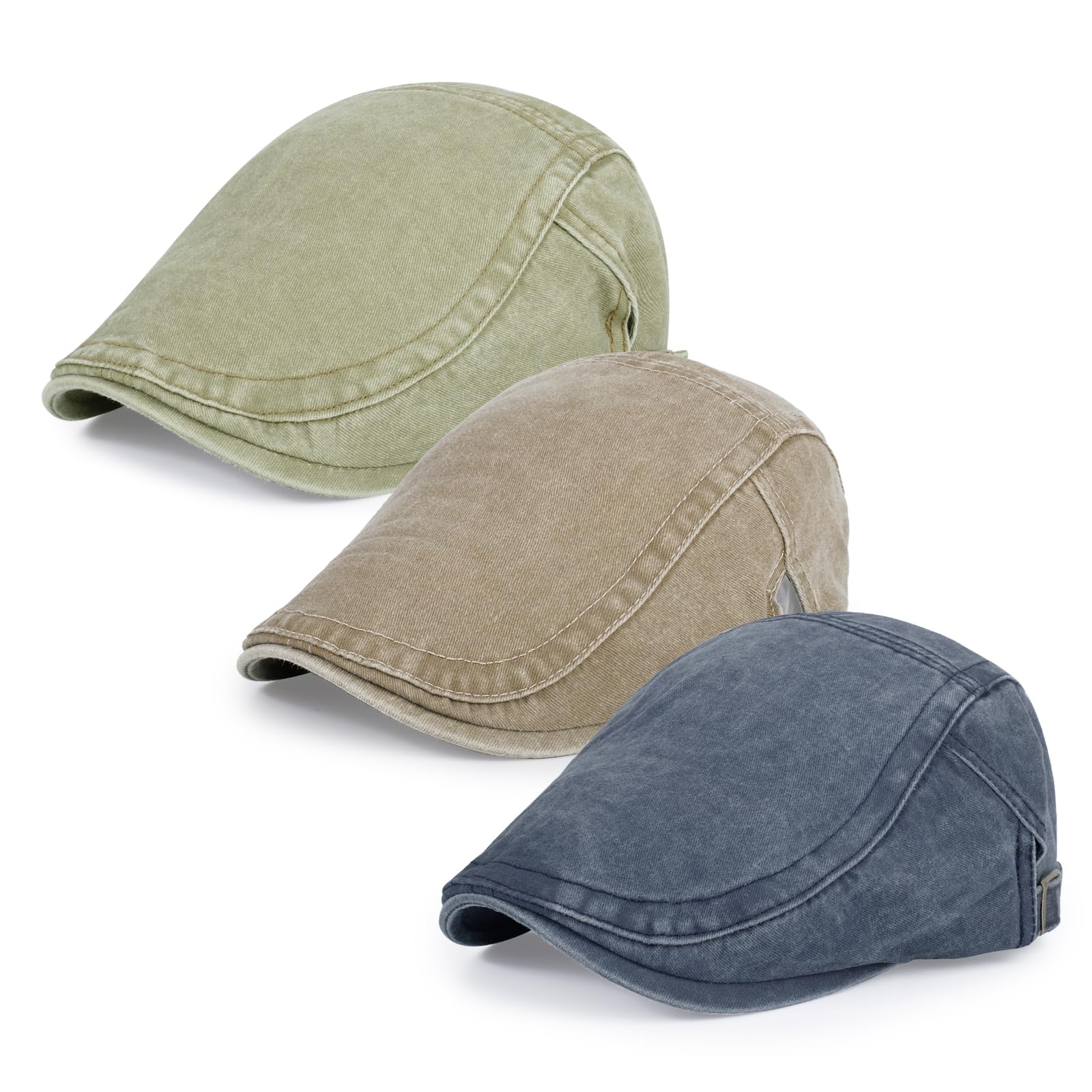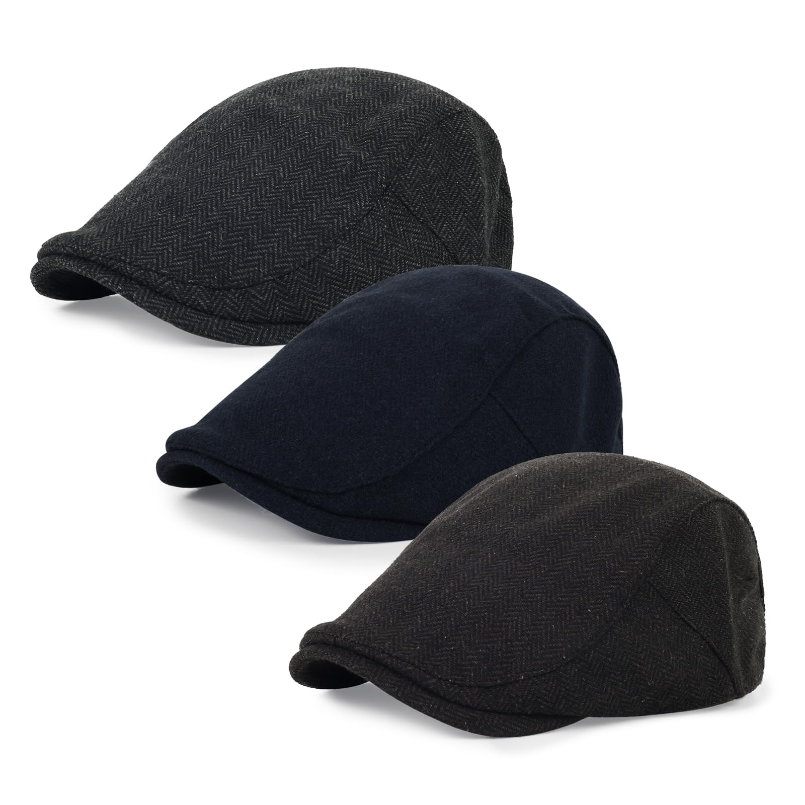 3 Pieces Men's Herringbone Flat Newsboy Hat Tweed Newsboy Cap Cabbie Driving Hunting Cap for Men Outdoor Daily Use