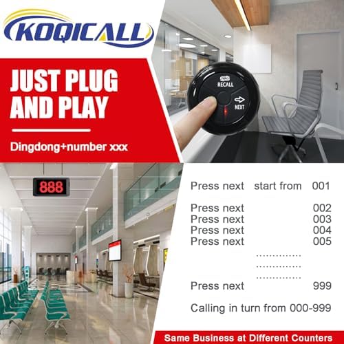 - [Long Distance] Up to 300ft in an open area; 100-200ft in obstacle field; It is suitable for the restaurant, food court, 4S store, bank, factory, shopping mall, cafe, food truck, snack bars, clinic or other noisy occasions where need wait in line.
