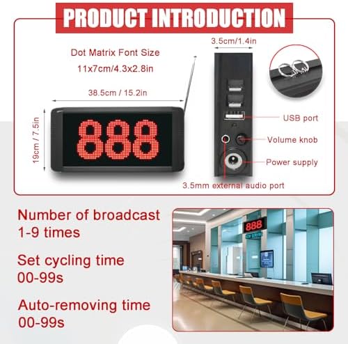 Queue Calling System Restaurant Pager Waiting Number Calling System Queue Management System Loud Speakers 3-Digit Display Call Host Display Screen Counter Caller for Restaurant/Cafe/Clinic/Bank