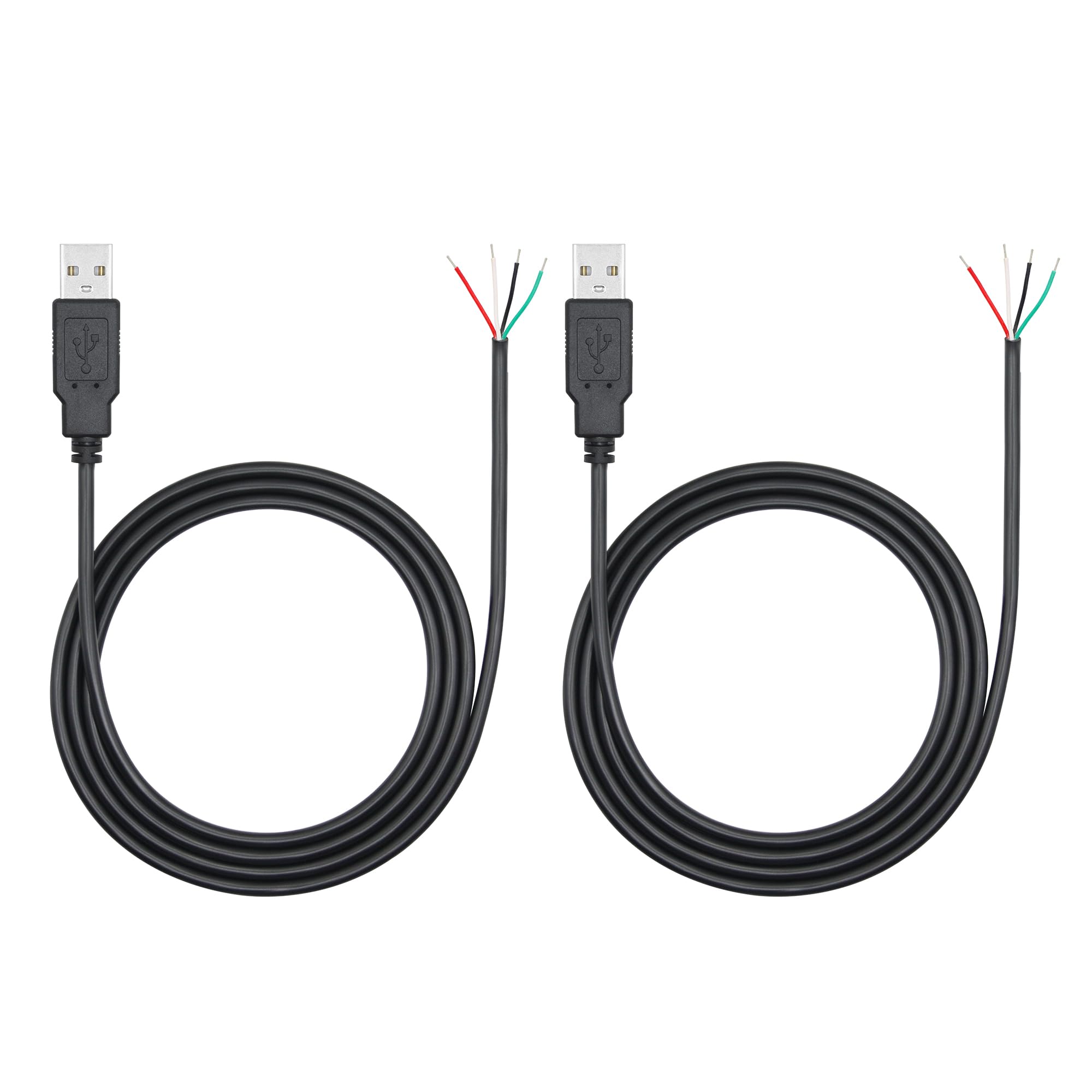 2Pcs Short USB A Female 2 Pin Bare Wire 11inch, USB 5V/3A Pigtail Open End Power Cable, for USB Equipment Installed or Replace Repair DIY Cable