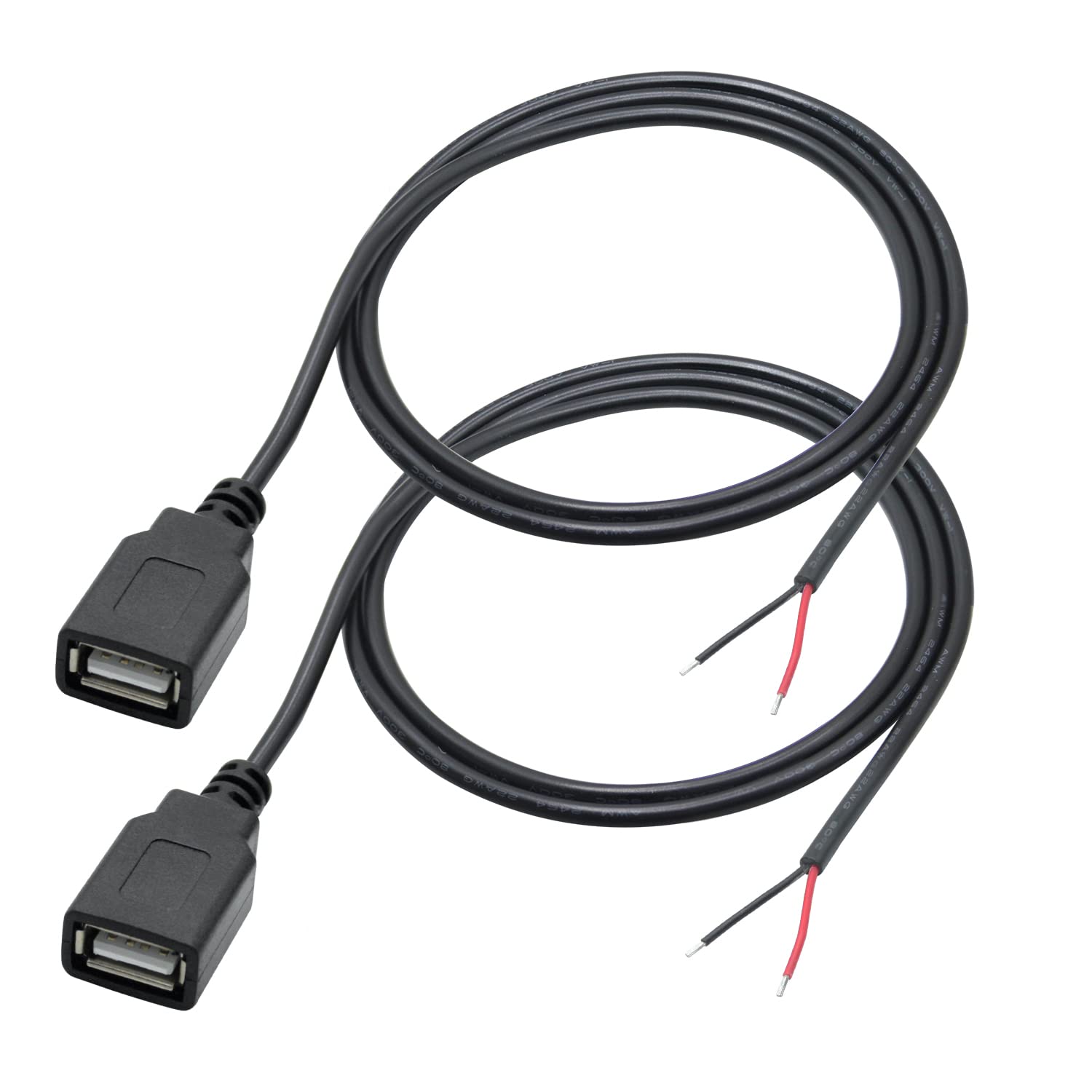 2Pcs USB A Female to 2 Pin Bare Wire (30cm/11inch)