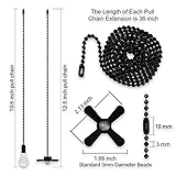 - We know your needs, and know that you are looking for classic & novel ceiling fan chains and lighting accessories.Here, we will try our best to show you our most professional side and make accessories a classic.Quality & Feature:High quality and strong bearing over 25ibs. The connectors are robust and don't break easily.Round bead with smooth surface, with no burrs, comfortable in touch.Adjustable in Length:Kit Set includes Extra 4 pcs 12inch ceiling Fan Chain,8Pcs Beaded Connectors, 2Pcs 36inch Fan Pull Chain Extension.Convenient and easy to attach to the end of the existing chain from your lighting or fan.If the pull chain is too long for your project, you can easily cut the pull chain into your desired length to install.Wide Applications:Pull Chain can apply to ceiling fan chains, high ceiling light fixtures and so on.Specifications:Color: Matte BlackMaterial: AlloyQuantity: 6 Pieces Fan Pull Chain, 3 Pieces Fan Pull Chain Extension and 12 Pieces Extra ConnectorsWarm reminders:Please allow manual measurement error of 1-3cm.