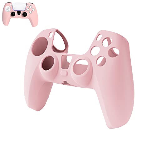 Pink PS5 Controller Skin, Peziang Ergonomic Anti-Slip Soft Ultra-Thin Silicone Protective Cover Gamepad Case for Play Station 5 DualSense Wireless Controller with 2 Cute Thumb Grip Caps