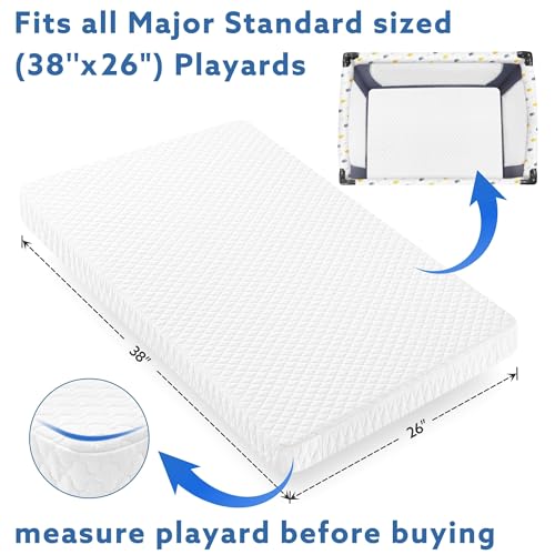 - PERFECT UNIVERSAL FIT FOR 38"x26" PACK N PLAY | Rounded, snug-fit corners ensure NO GAPS against playard edges for secure baby positioning. ALWAYS CONFIRM YOUR PLAYARD SIZE BEFORE USE.