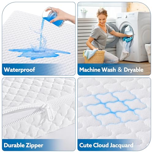 - EASY-CLEAN & BABY-SAFE | Waterproof, stain-resistant cover wipes away spills effortlessly. Ultra-soft, hypoallergenic jacquard is gentle on sensitive skin. Machine washable with durable zippers for quick removal (<30 secs!).