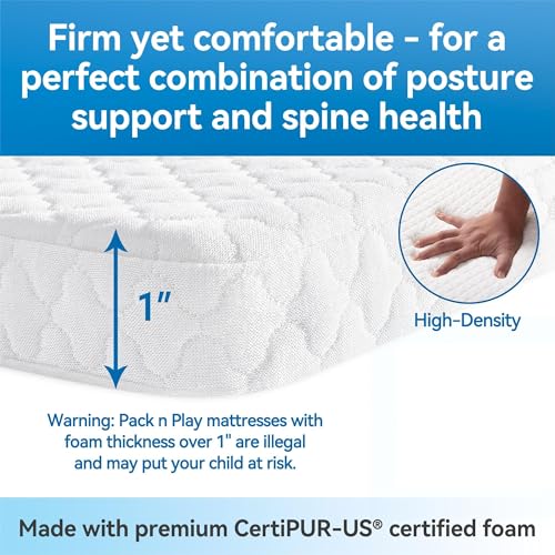 - PREMIUM FOAM FOR SWEETER DREAMS | Breathable foam reduces heat buildup and promotes airflow, supporting longer, sweeter rest. The ideal 1" thickness provides excellent comfort and support balance while meeting rigorous U.S. safety standards—perfect from newborn to toddler.