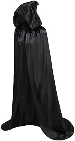 yolsun Black Satin Cape with Hood for Women Halloween Adult Vampire Hooded Cloak Costume