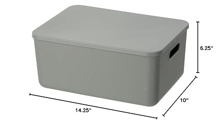 KEEPS HOME CLEAN AND CLUTTER FREE - Whether you need to organize your things in the closet, bookshelves or room, these plastic storage containers organize and keep everything nice and contained MORE DURABLE AND STURDY - These plastic bins are uniquely designed to save you money and time organizing your home. Made of high quality plastic, our containers are solid to hold most of the household items neatly SECURED LID - The semi-transparent lid allows you to keep items safely stored like craft projects, office supplies, cleaning products, and toys. The bins are stackable when not in use PERFECT FOR OFFICE AND BUSINESS - Organize office supplies, business cards, coupons, and other items in the shop. Teachers can also use them as desk organizing bins for papers, pens, staples, clips, and more AVAILABLE IN THREE SIZES - We offer the following sizes:- Small: Upper Length 10.25 in. x 7.25 in. Upper Width x 6.25 in. Height. Medium: Upper Length 14.25 in. x 10.25 in. Upper Width x 6.25 in. Height. - Large: Upper Length 14.25 in. x 10.25 in. Upper Width x 9.5 in. Height.