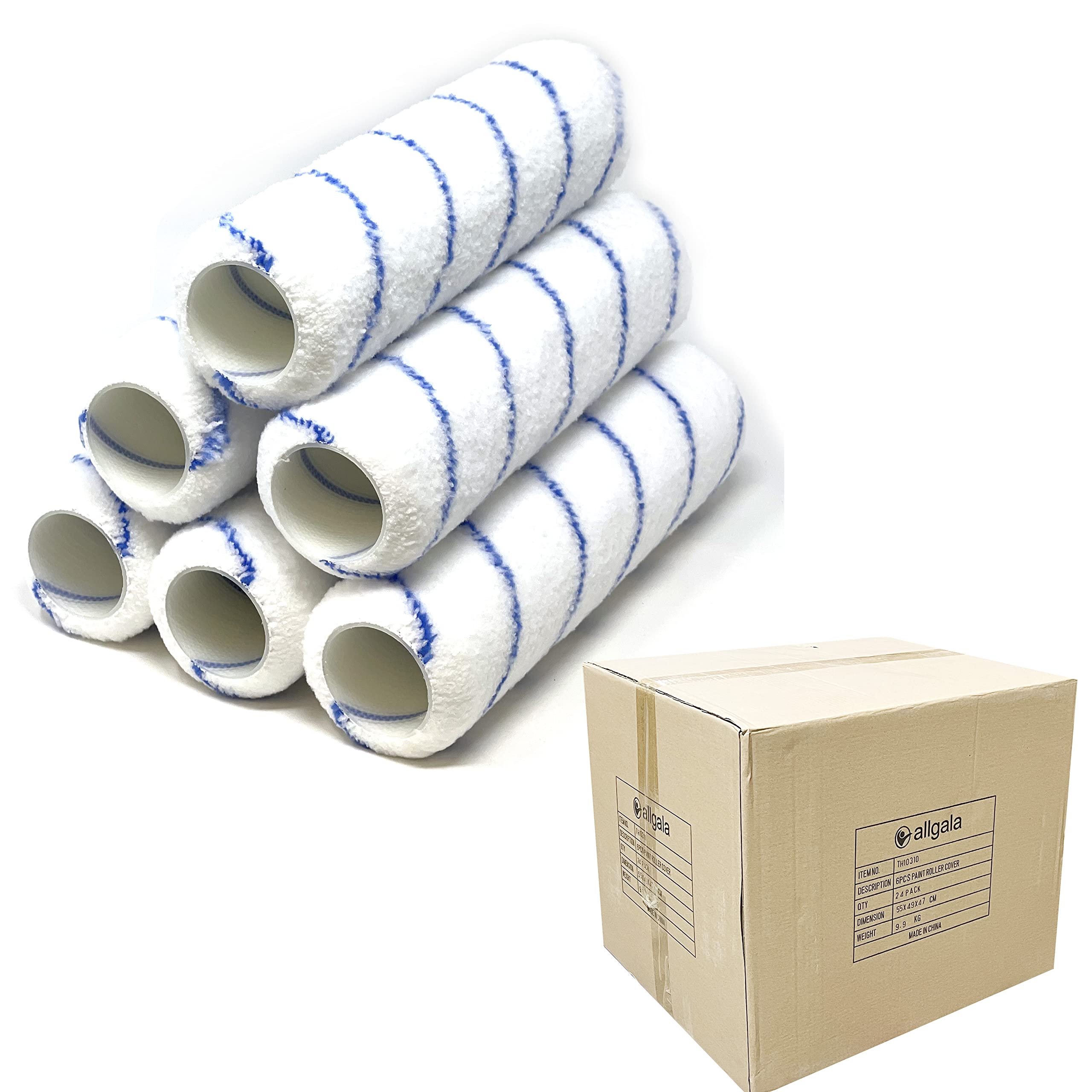 Allgala Paint Roller Covers, 24 Pack 9 Inch Shedless Lint Free Painter Roller Covers 1/2 in Roller Naps for Paint Roller Kit