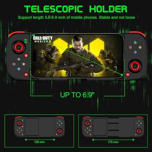 - Works with iOS 14.0 +: The phone controller retractable holder supports phones with lengths of 5.0-6.9 in, works for iPhone 16, iPhone 16 Plus, iPhone 16 Pro, iPhone 16 Pro Max, iPhone 15, iPhone 15 Plus, iPhone 15 Pro, iPhone 15 Pro Max, iPhone 14, iPhone 14 Plus, iPhone 14 Pro, iPhone 14 Pro Max, iPhone 13, iPhone 13 mini, iPhone 13 Pro, iPhone 13 Pro Max, iPhone 12, 12 Pro, 12 Pro Max, iPhone X, iPhone 11 Pro, 11 Pro Max, 11, 7Plus, 8Plus, most Arcade, MFi Games, Cloud Gaming, and more