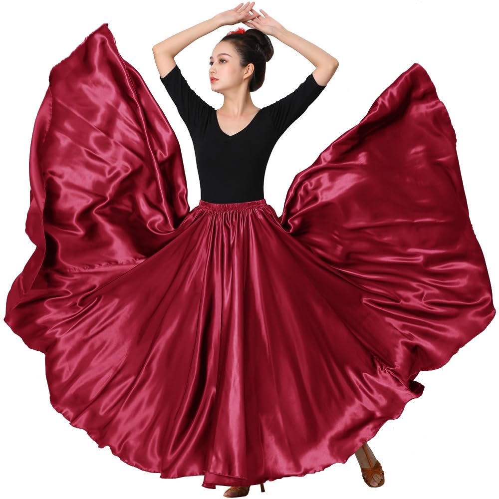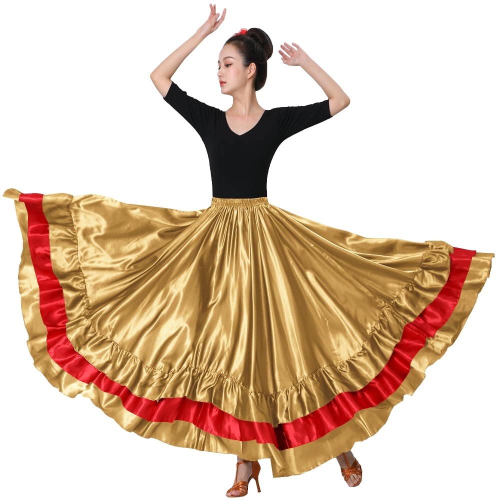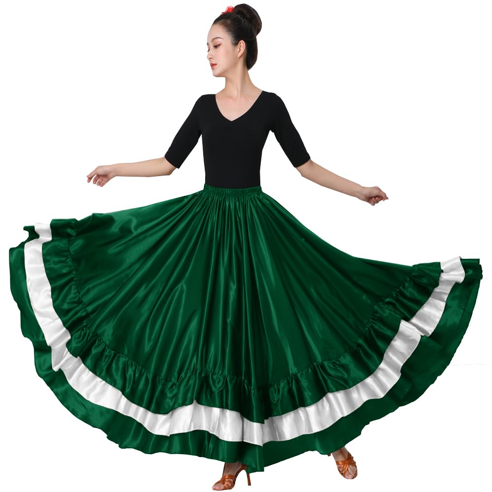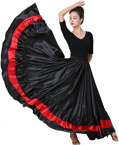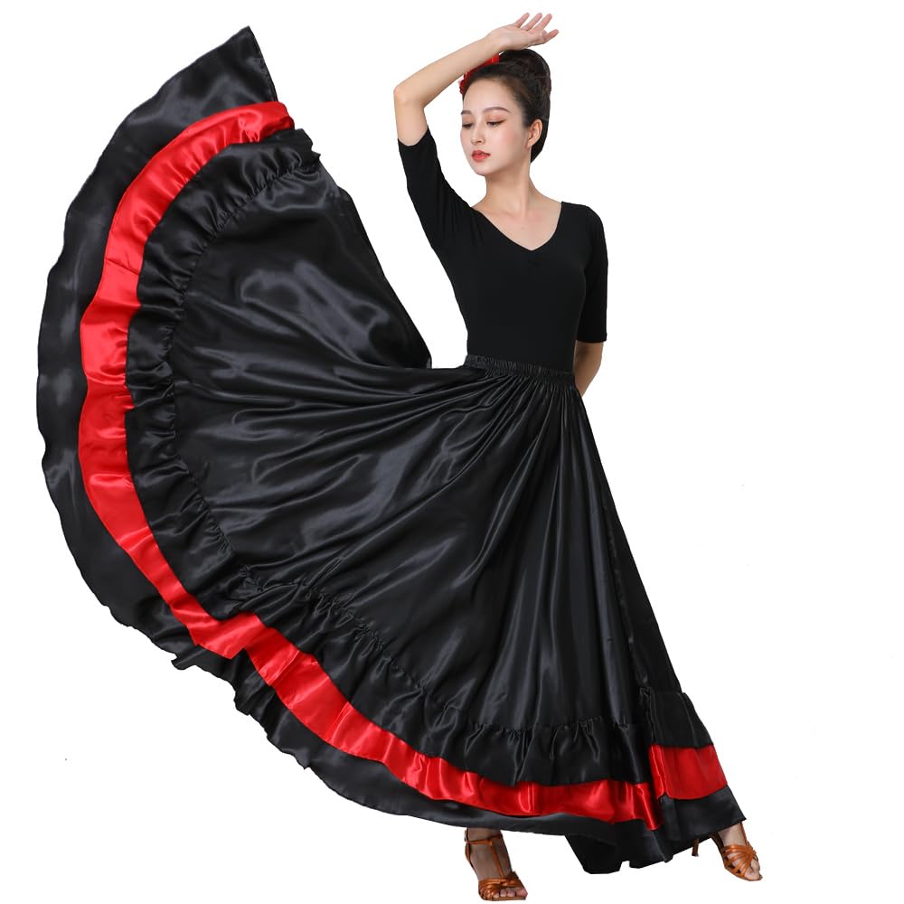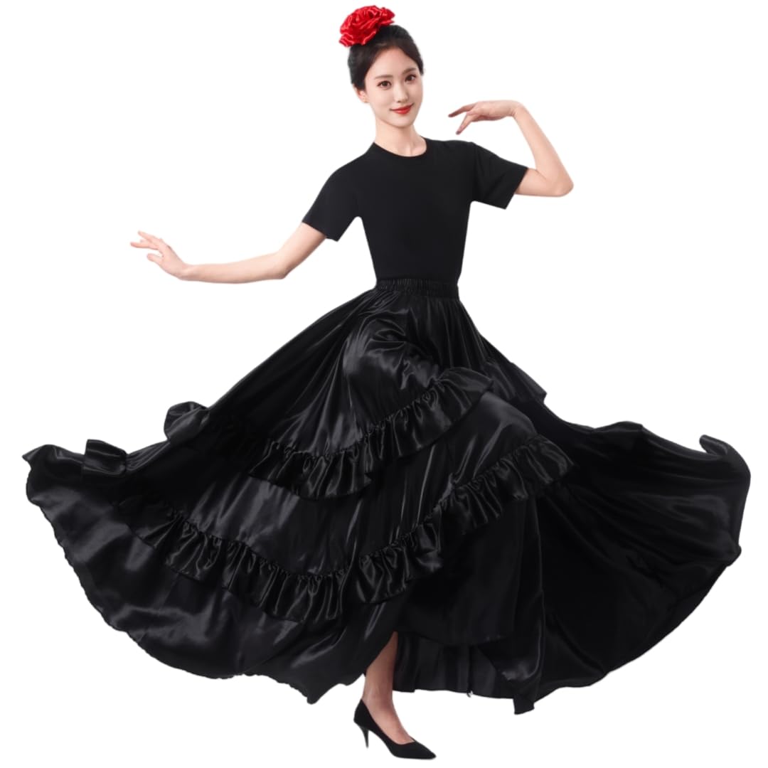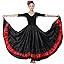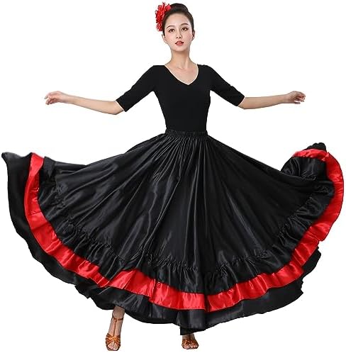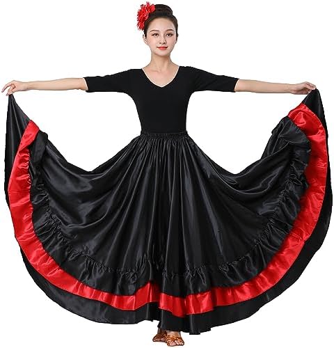 SANCAN Womens Ruffle Full Long Spanish Bull Folkloric Mexican Flamenco Bomba y Plena Skirt Flowy Dancing Dress Costume