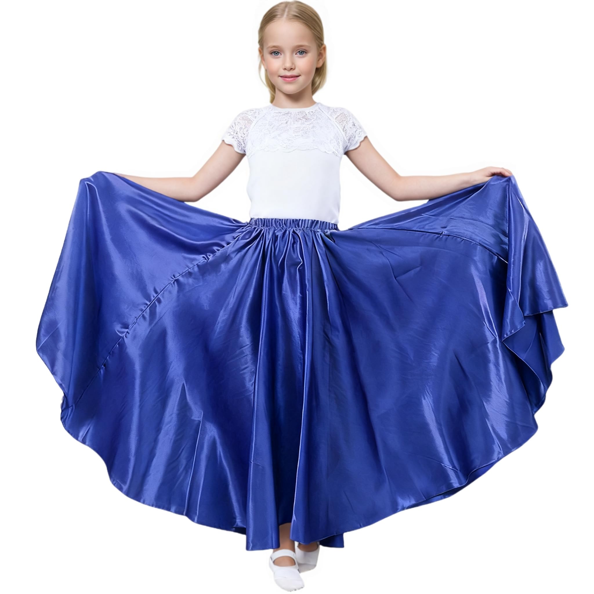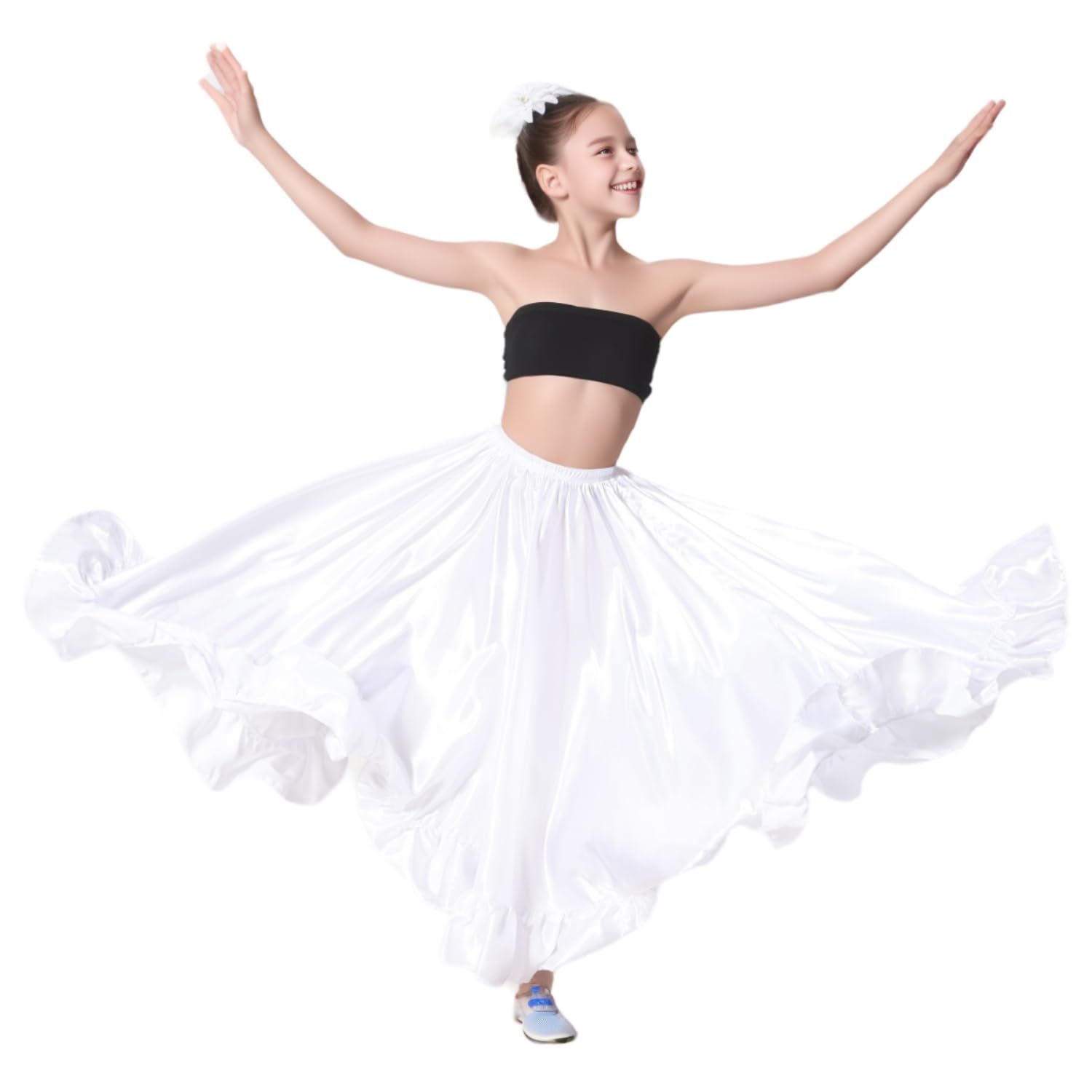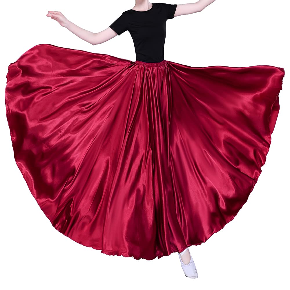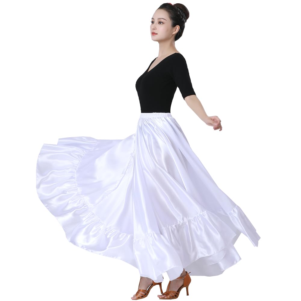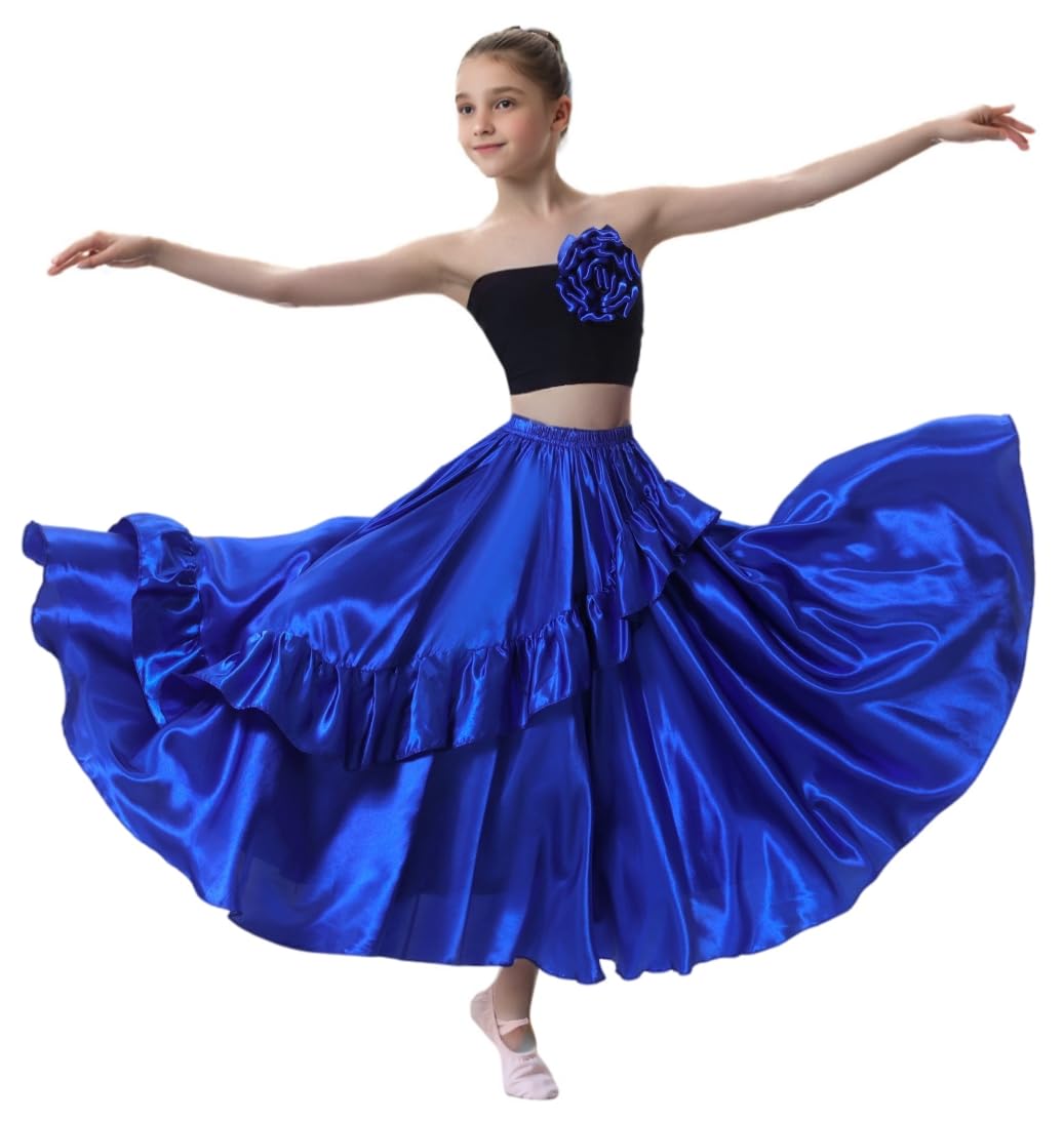 SANCAN Womens Ruffle Full Long Spanish Bull Folkloric Mexican Flamenco Bomba y Plena Skirt Flowy Dancing Dress Costume