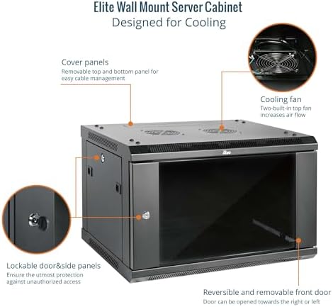 Tecmojo Elite Collection 6U Wall Mount Server Cabinet IT Network Rack Enclosure Lockable Door and Side Panels Black (Black, Elite/Glass/17.7inch Deep)