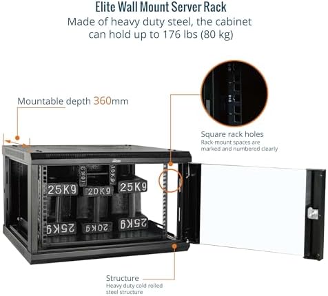 - 【Robust Construction】:As the basis of heavy duty cold rolled steel, network cabinet has a weight capacity of 176lbs(80kg); Electrostatic powder coat preventing rust and corrosion; 14.2”(360 mm) mountable depth