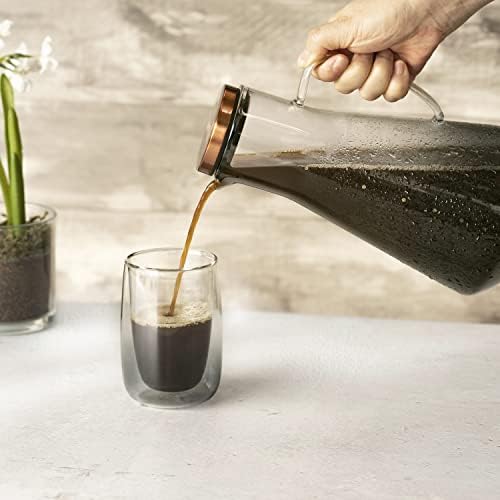 Sio Cold-Infusion Pitcher – 54 fl oz / 1600 mL Borosilicate Glass Pitcher with Micro-Fine 316 Stainless Steel Strainer & Copper-Plated Lid, Includes Measuring Scoop