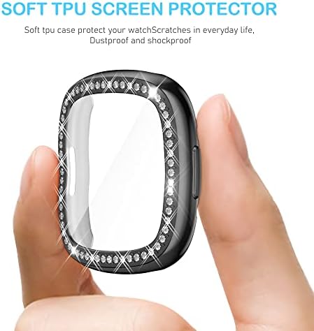 RICHONE 2-Pack Compatible with Fitbit Versa 4 & Sense 2 Screen Protector Case, Bling Diamonds Cover Soft TPU Bumper Smartwatch Accessories (2xBlack, Sense 2 & Versa 4)