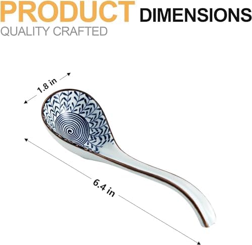 - 【Nice Pattern Design】6.4"L x 1.8"W. Asian Soup spoons with 4 unique and lovely patterns, which is perfectly integrate the blue and white porcelain, elegant and beautiful. Under glaze technology, just feels better than using plastic,Stainless Steel.