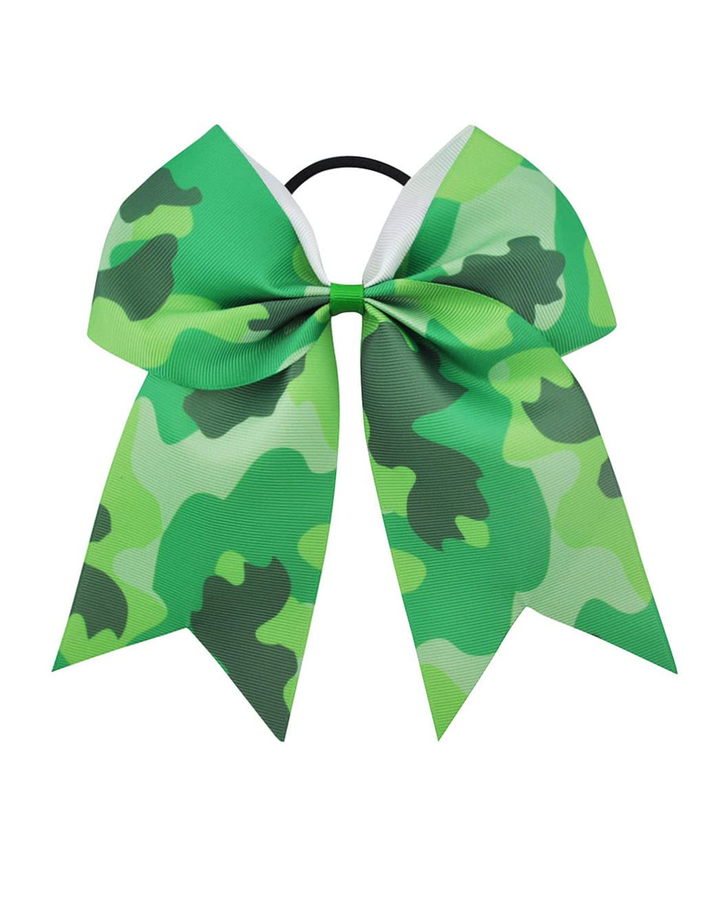 - Green Camouflage Cheer Bow for Kids Little Girls Ponytail Holder Came School Bow