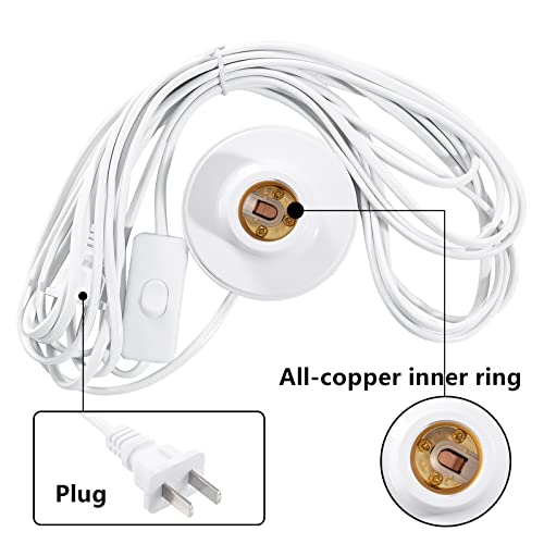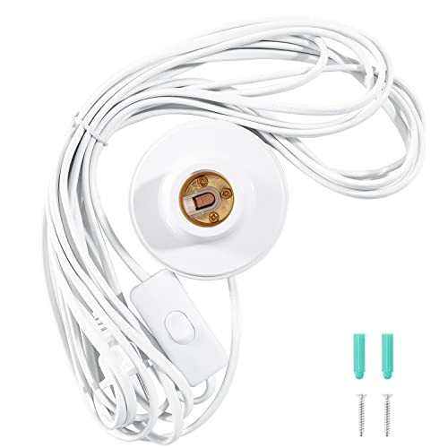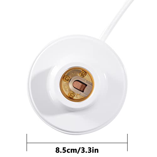 20Ft E26/E27 Socket On/Off Switch Wire Light Bulb Socket Lamp-Socket for Balcony, Garage Installation Lighting, 1-Pack, White (Round Socket)