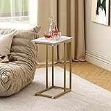 Function Home C Shaped End Table, Small Side Tables for Sofa Bed, Couch Tables That Slide Under, Drink Snack Table for Living Room Bedroom Small Space, White Wood Top and Gold Metal Frame