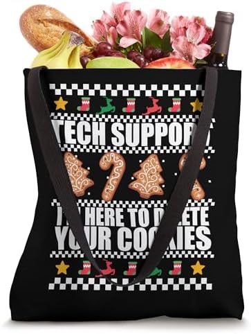 TECH SUPPORT. I'M HERE TO DELETE YOUR COOKIES. Funny Ugly Christmas Sweater design for your favorite developer who codes all day! Features gingerbread cookies in the shape of Xmas trees and candy canes. Whether you're a professional front-end, backend, full-stack, software, or UI/UX developer, you know how easy it is to obsess over codes and programming languages. Great meme for a computer programmer, coder, anyone into web development. Click on the brand name for more funny coding memes.