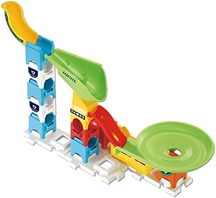 With the Marble Rush Double Drop Set marble run from Vtech playing is twice as much fun. What cool creations can you invent with this 47-piece playset? The Marble Rush Double Drop Set consists of 2 fill and tilt modules for marbles. So the marbles collect and fall down not just once, but twice. The set contains 5 marbles and a module that allows you to throw the marbles into the air. This playset is compatible with other Vtech Marble Rush products, so you can combine them to expand your Marble Rush world. Includes colour-coded assembly instructions (English language not guaranteed). English language not guaranteed).