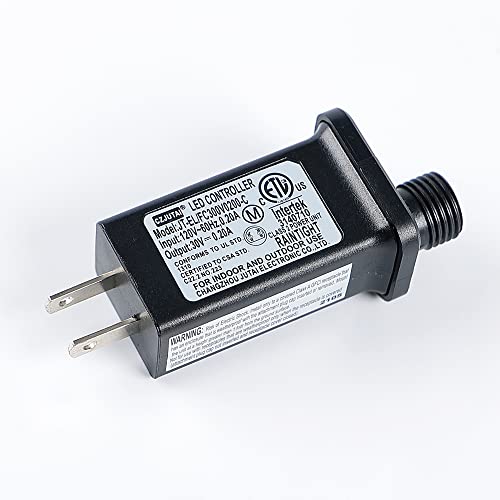 - 8 Modes:Combination, in waves, sequential, slo-glo, chasing/flash slow fade, twinkle/flash, steady on.This adaptor fits for 30V low voltage led device with current under 6 watts, such as Christmas String Lights, Copper Wire Light, Projector Light.