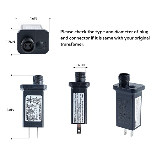 - Warm Tips: Please check the voltage, currents, watts, and (+/-) two hole of the connector if this transformer fits your device or not before your purchase.This power supply is only suitable for 8-mode light strings, not suitable for 1 Mode steady on string lights.