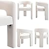 Modern Dining Chair Set of 4, Velvet Upholstered Barrel Kitchen Chair, Round Dining Chairs with Wooden Legs, Assembled Accent Armchairs for Dining Room/Living Room/Bedroom/Side, Ivory