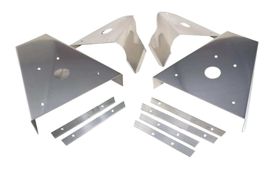 Front and rear a frame guards they are made of .090 3003 aircraft aluminum. Easy to install all you need drill bit, wrench, and screw driver. Comes with all hardware. These are .090 thick. Thanks Just clamp in place and some 1000's have the factory holes and some do not, just clamp in place and mark them lower a frame and drill it with a drill bit and install the bolts and tighten. Install video: https://www.youtube.com/watch?v=CL-TCcHc4TU