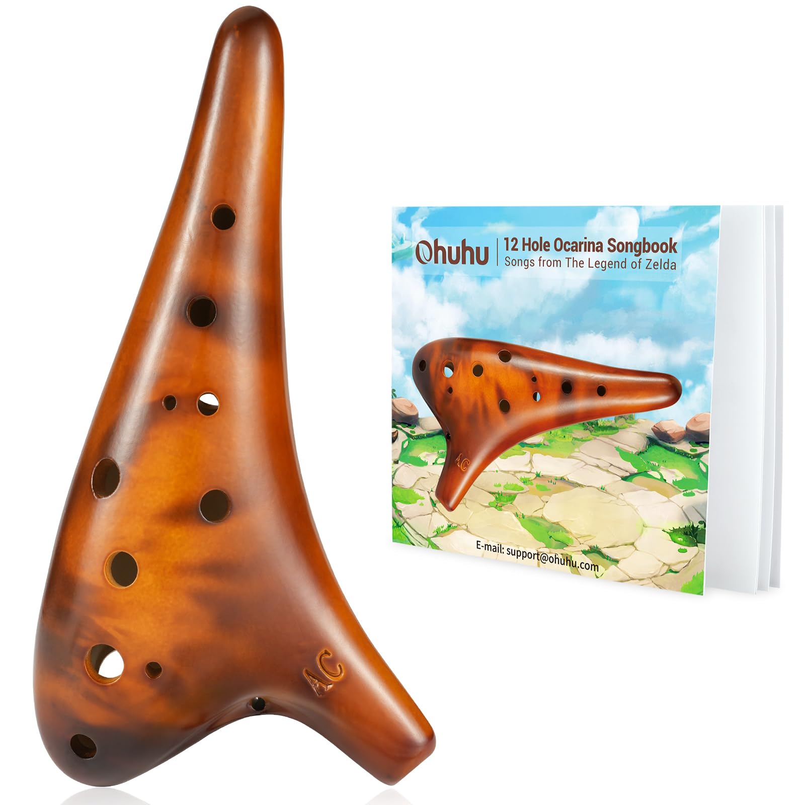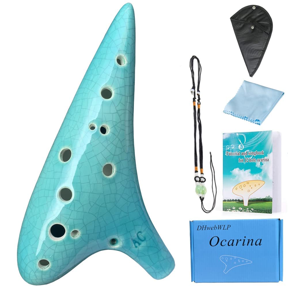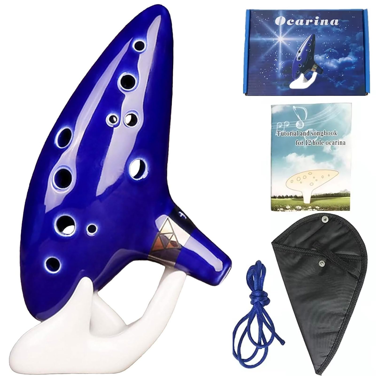 12 Hole Ocarina Instrument With Song Book for Beginner,Alto C Ceramic Ocarina(Starry Blue & Purple & Black)