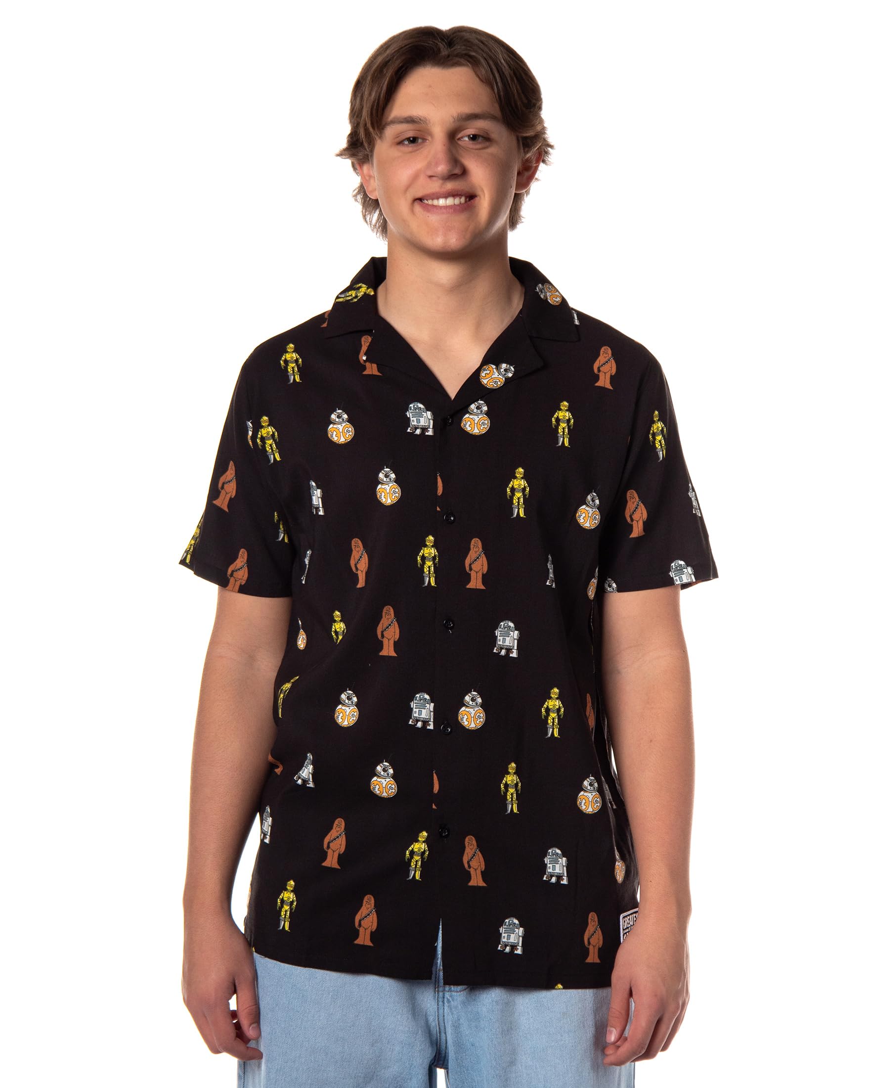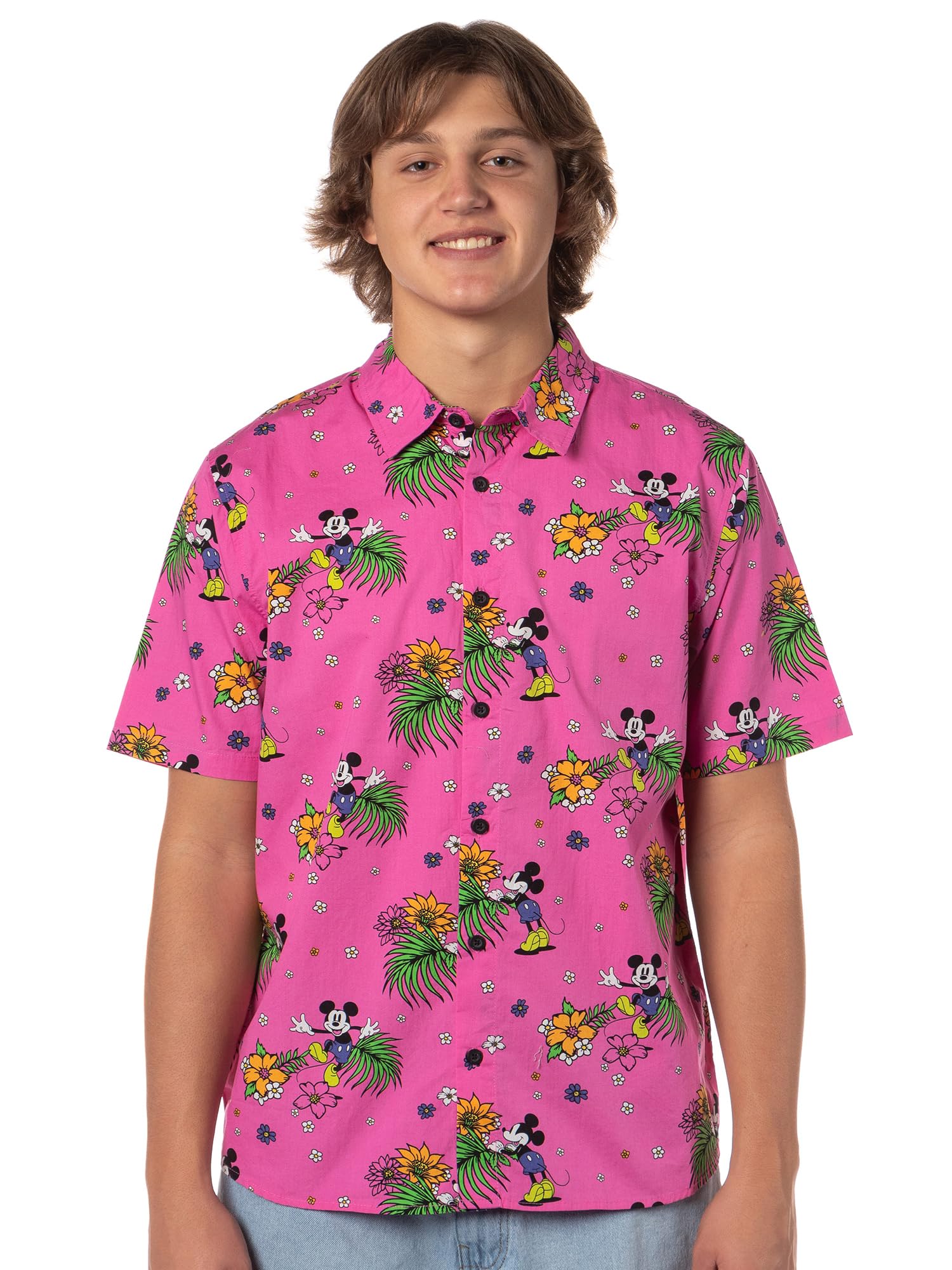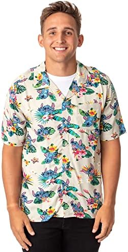 Disney Lilo and Stitch Men's Stitch Tropical Hawaiian Button Up Shirt