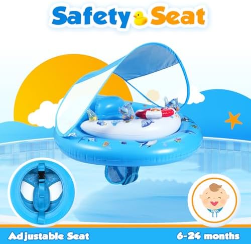 Baby Pool Float with Canopy UPF50+ Sun Protection, Inflatable Kids Pool Floats with Toy Play Console for Baby 6-36 Months, Infant Swimming Float with Adjustable Safety Seat for Boys Girls