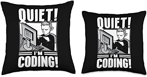 Quiet I'm Coding Boy Guy Sayings Programmer Coder Code Throw Pillow