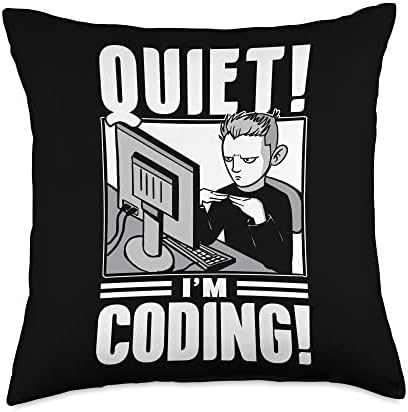 Quiet I'm Coding Boy Guy Sayings Programmer Coder Code Throw Pillow