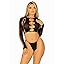 Leg Avenue womens 2 Pc Seamless Cut Out Long Sleeve Crop Top and G-string Panty.
