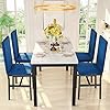 Hooseng Dining Table Set for 4- Space Saving Kitchen Table and Chairs for 4, Modern Style Faux Marble Tabletop & 4 Blue Velvet Chairs for Dining Room, Kitchen, Breakfast Corner Small Spaces, Blue