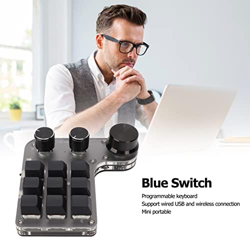 - ONE-HANDED PROGRAMMABLE MECHANICAL KEYBOARD: Mini keyboard with custom functions, Type-C to USB interface, no driver required, plug and play, with adjustment knob, quick customization, minus the tedious links. All key functions of the keyboard standard can be set to achieve complex combinations of shortcuts with one key.