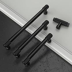 Amerdeco 10 Pack Matte Black Cabinet Knobs 2 Inch Length Single Hole T Bar Kitchen Cabinet Knob Knurled Cabinet Pulls for Drawer Dresser Cupboard ZH0034