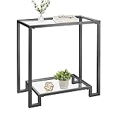 STURDY: The black side table is made of high-quality metal frame and sturdy glass, thickened metal frame legs provide stable support. These clear bumper pads under the glass of the rectangular coffee table can effectively protect the glass from being scratched, and the equipped foot pad can prevent the floor from being scratched. STYLISH DESIGN: The black frame of the rectangular table shows its elegance, complements the glass top, and its excellent transparent visual effect can match most furniture. The bedside table adopts a unique hidden interface installation design, which hides all installation components inside, making its appearance more tidy and beautiful. PERFECT SIZE: The metal end table with a size of 22" x 12.4" x 24"" has 2 layers of open storage space with a wide top and a narrow bottom, which brings you visual differences and is suitable for displaying green plants, candles and other decorations. Glass coffee tables for small spaces are lightweight and easy to move. APPLICABLE SCENE: These black accented decorative tables can be used as sofa table, side table, coffee side table, nightstand, it is ideal for porch, office, living room, bedroom, home office or small apartment. You can use it to create a cozy and inviting atmosphere that will impress your guests! EASY TO MAINTAIN: The smooth top of this rectangular coffee table is easy to clean and maintain, requiring only a simple wipe with a damp cloth to keep it looking brand new. The metal side table comes with detailed installation instructions and mounting hardware, making this sofa side table quick and easy to assemble.
