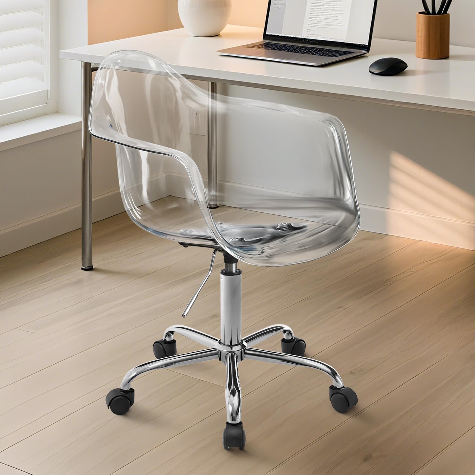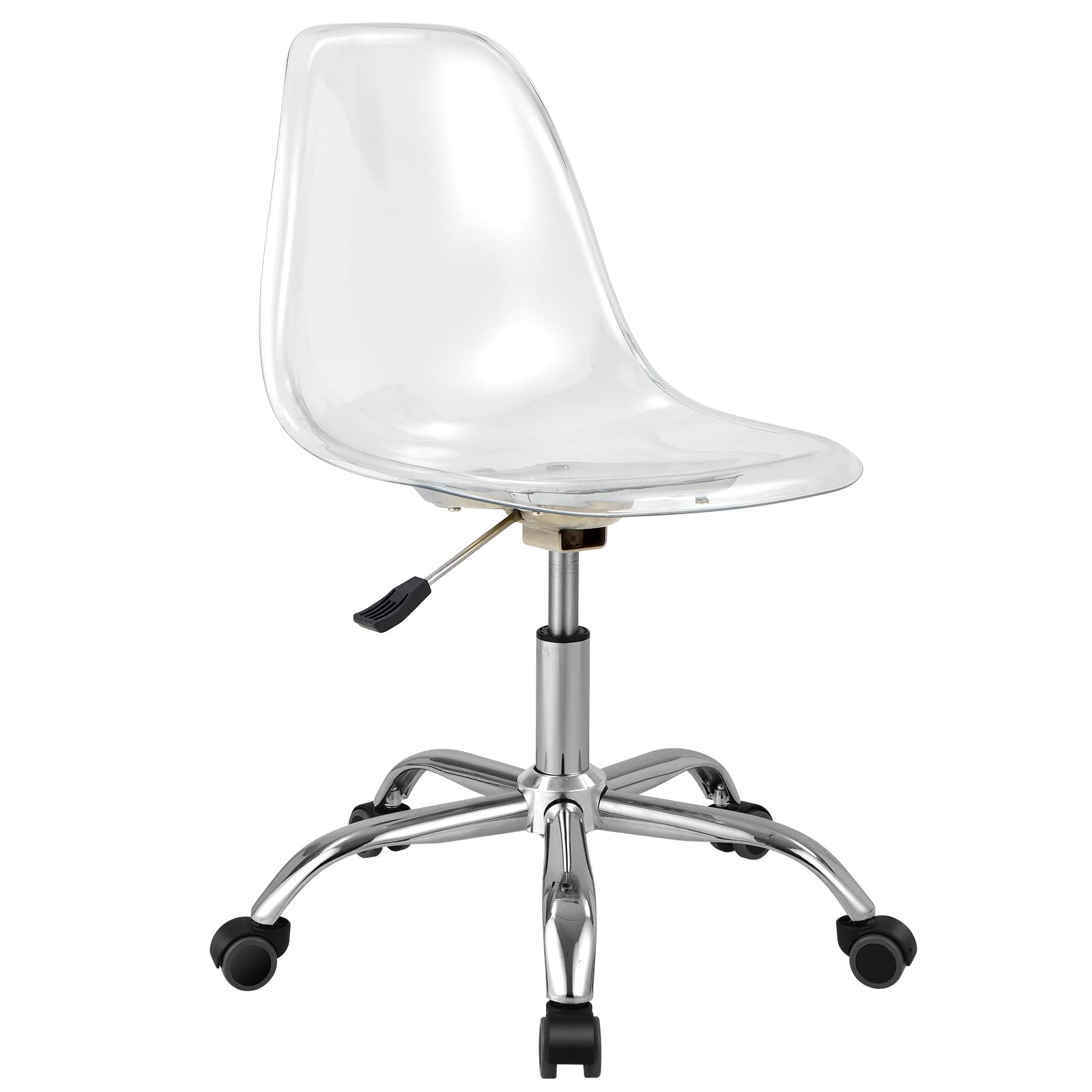 Acrylic Clear Desk Chair Modern Home Office Ghost Chairs with Wheels Cute Armless Rolling Vanity Plastic Chair with Adjustable Height (Clear)