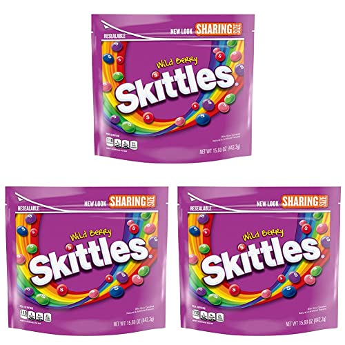 Skittles, Wild Berry Candy Sharing Size Bag, 15.6 oz (Pack of 3)