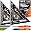 - UNA CAJA DE HERRAMIENTAS EN UNA ESCUDRA - Nuestra nueva regla triangular no es solo una herramienta de medición ordinaria. Combina seis herramientas de carpintería en un solo accesorio, incluyendo una escuadra, dos transportadores, tres guías de líneas, dos reglas, una guía de pernos y una llave. ¡Tu nueva herramienta de precisión multiuso!