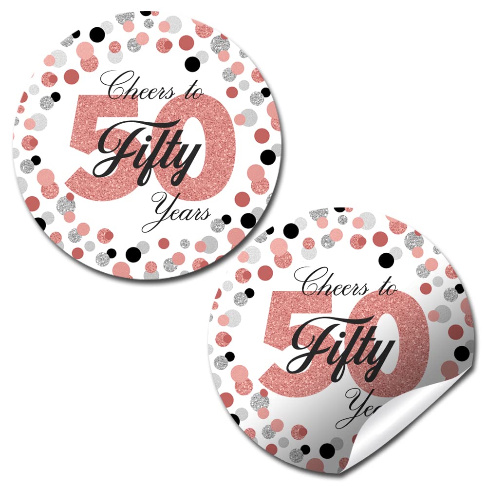 - Cuteness Overload: Designed by a talented mom, these colorful stickers feature 4 designs of fiftieth Birthday images on a gorgeous black, rose gold and silver glittery background (glitter is digitally printed and not actual glitter). Perfect for a 50th Birthday Bash! They are designed to fit on the bottom of your favorite chocolate kisses. Amanda Creation. Original design by Amanda Creation.