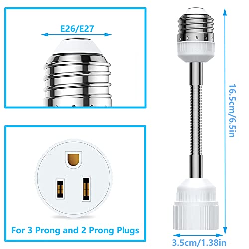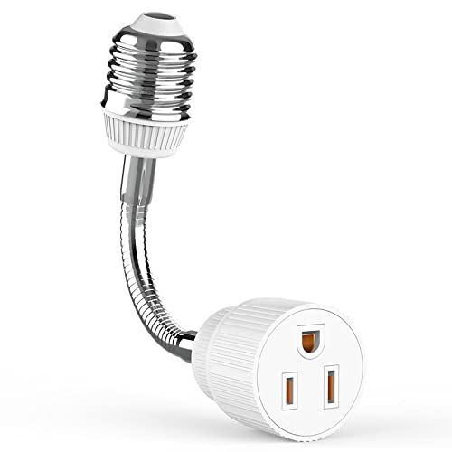 - 【Lengthened Gooseneck Design】: 3 prong light socket to plug adapter comes with aluminum alloy gooseneck connector, extending the length from the adapter to the socket, 360° flexible rotation, convenient for you to control the direction of the plug. Lengthening aluminum alloy hose middle length 16.5cm/6.5in, width 3.5cm/1.38in, can better meet your needs.