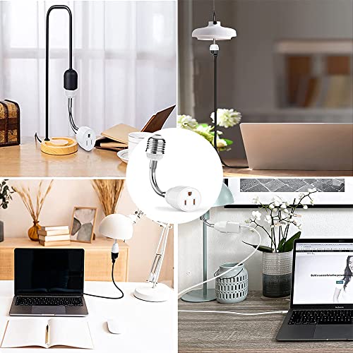E26/E27 Light Socket to Plug Adapter 3 Prong, E26 E27 Standard Light Socket to Plug Adapter, Flexible Light Socket Outlet with Extension Cord Polarized Plug for Indoor Outdoor Garden (White)