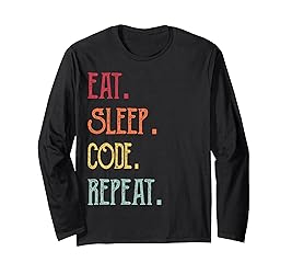 - Funny retro Laughing, Eat, Sleep, Code Repeat design. Good cute top to show that you love to Code, develop and program. Good sarcastic vintage Code design to wear to let everyone know that all you do is eat, sleep, Code, repeat.